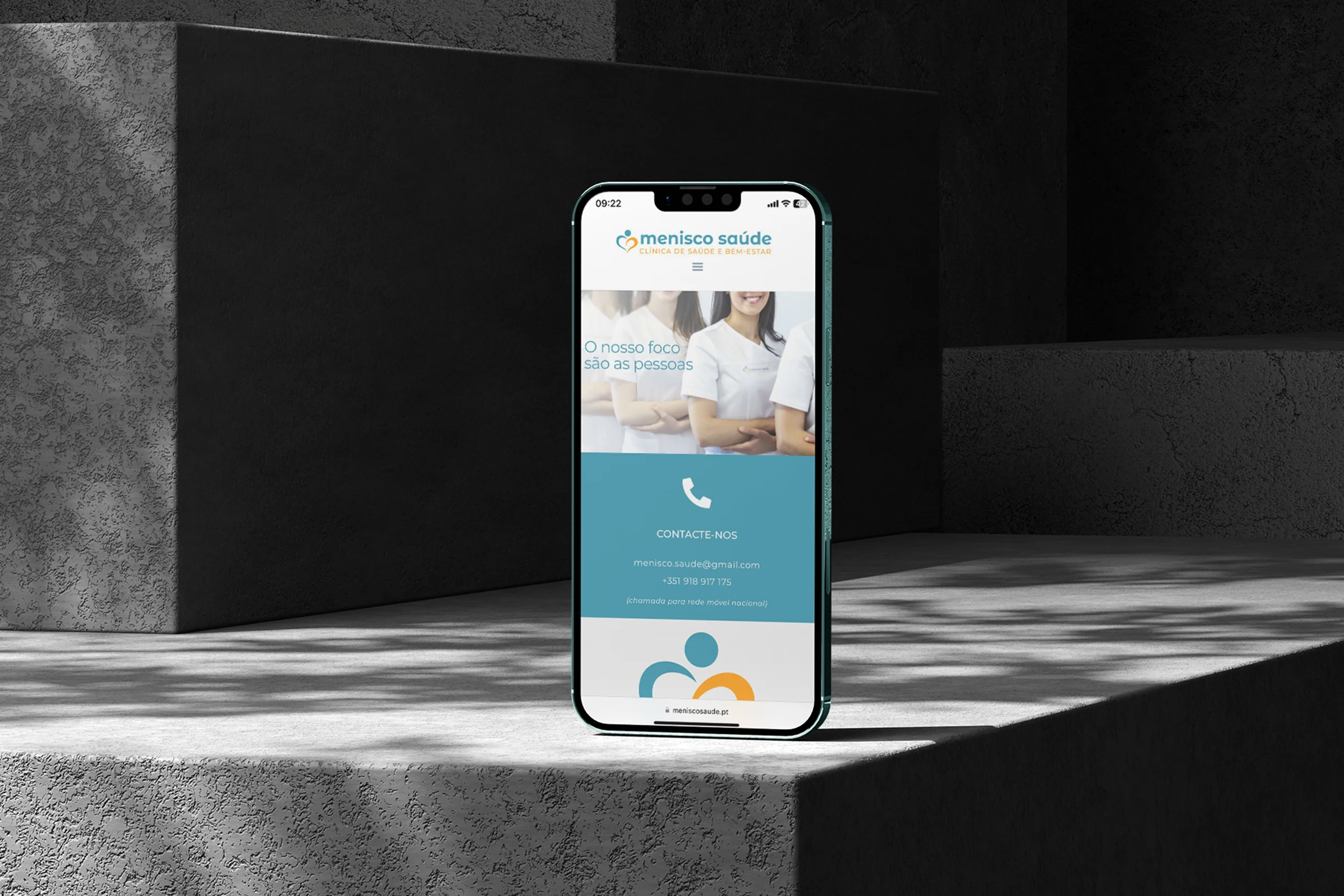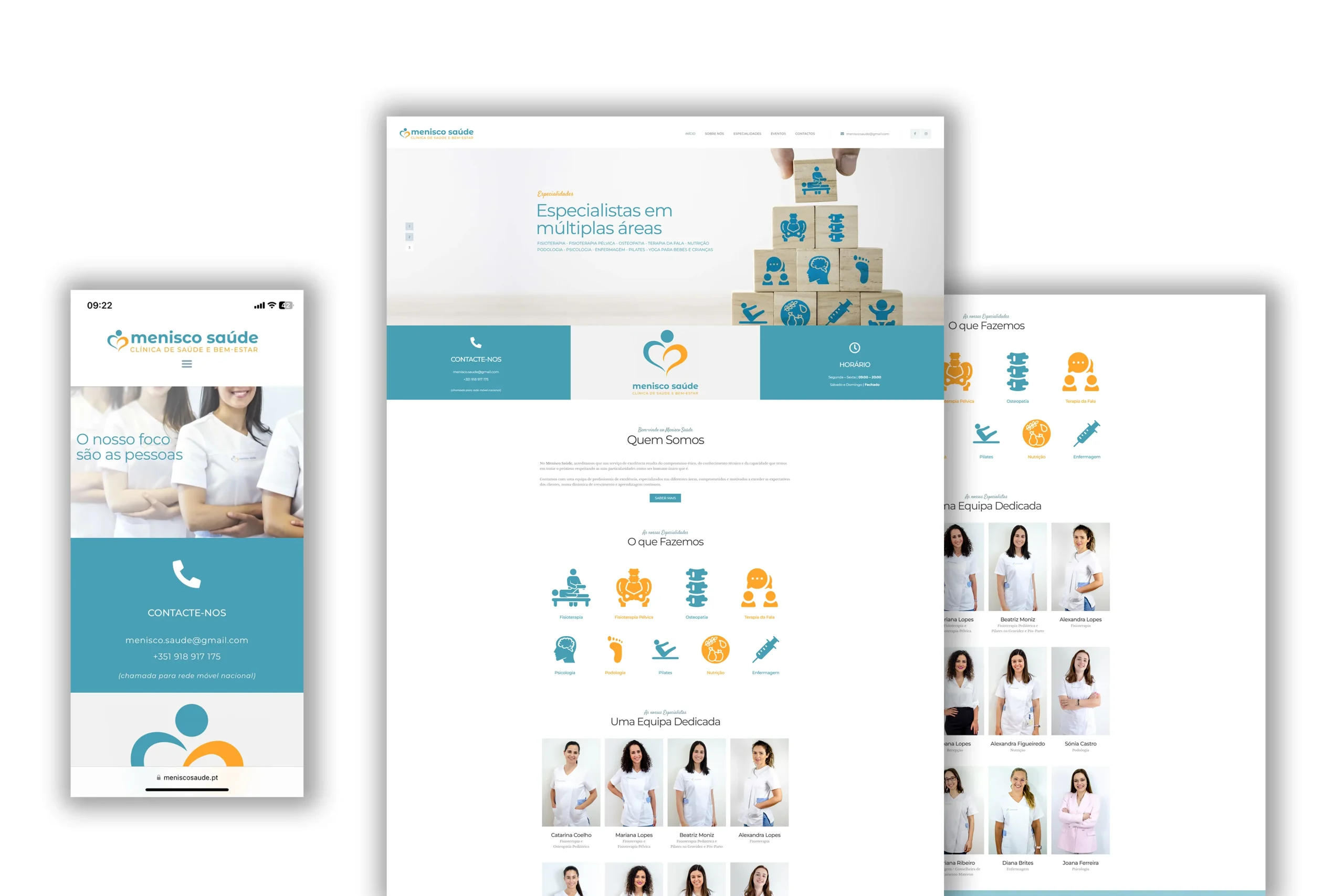 A Menisco Saúde é uma clínica especializada em Fisioterapia. Foca-se em melhorar a qualidade de vida das pessoas. Redesenhámos o logótipo, incorporando conceitos de cuidado e valores como saúde e bem-estar. Criámos um novo website desde o início. Também fizemos sessões fotográficas com a equipa, reforçando a identidade visual. O objetivo foi destacar o compromisso da clínica com os pacientes.