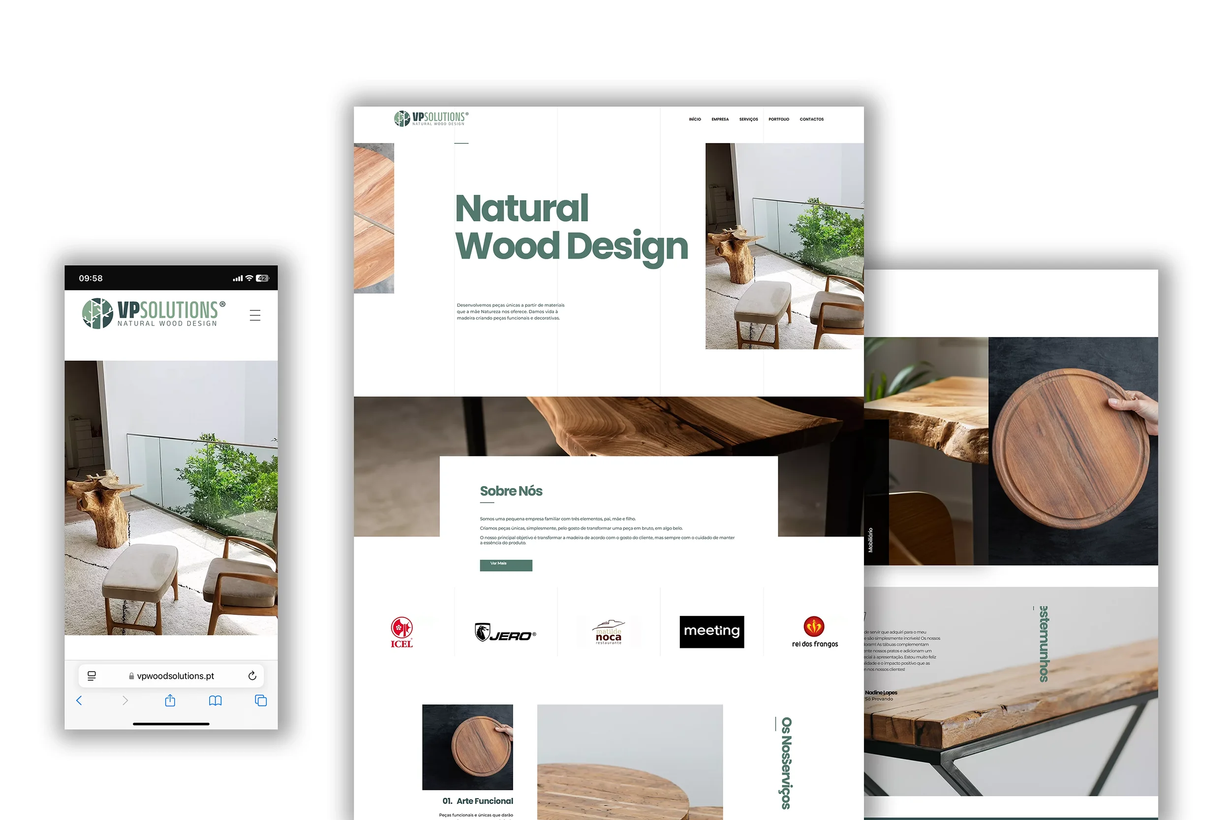 A VP Wood Solutions é uma empresa familiar. Especializa-se na transformação de madeira natural. Criámos a identidade visual e o website da marca. Usámos tons de verde para evocar a natureza e reforçar a ligação ao meio ambiente. Desenhámos o logótipo com inspiração na floresta. Ele transmite a essência da marca e o compromisso com a sustentabilidade e o respeito pela natureza.